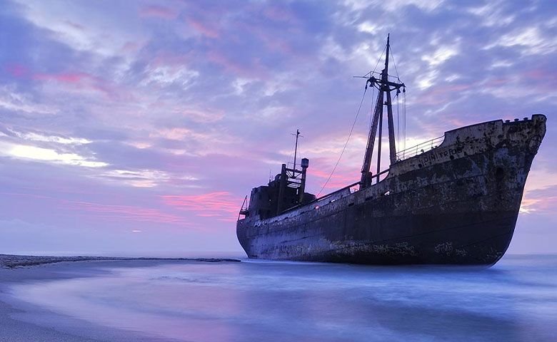 یک کشتی قدیمی که در ساحل کیش گیر کرده و به یکی از نمادهای این جزیره تبدیل شده است.
